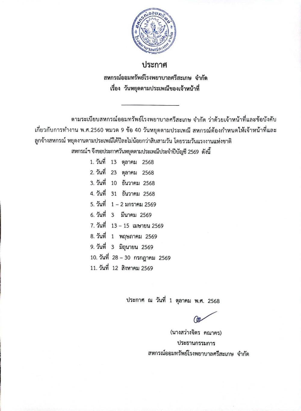 ประกาศด่วนจากสหกรณ์ 27-28 สิงหาคม 2568