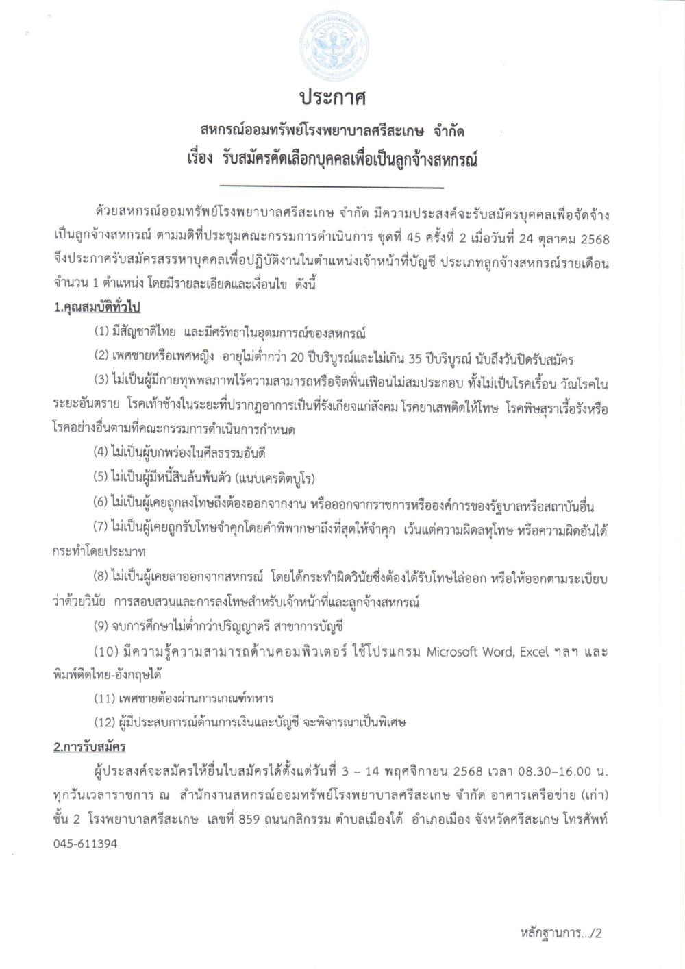 ประกาศรับสมัครงาน ตำแหน่ง เจ้าหน้าท่ี่บัญชี 3-14 พย.2568