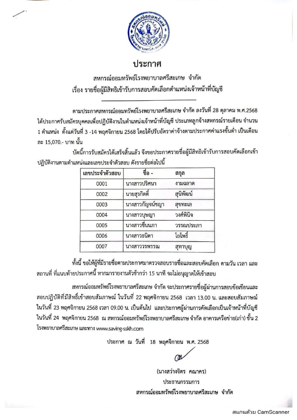 ประกาศรายชื่อผู้มีสิทธิ์สอบ ตำแหน่งเจ้าหน้าที่บัญชี